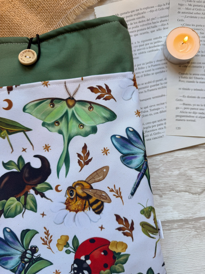 Esta funda de libro tamaño L es perfecta para ti si te encanta leer y además te gusta la entomología y el mundo de los insectos.